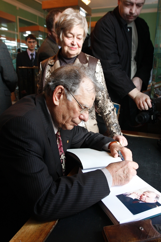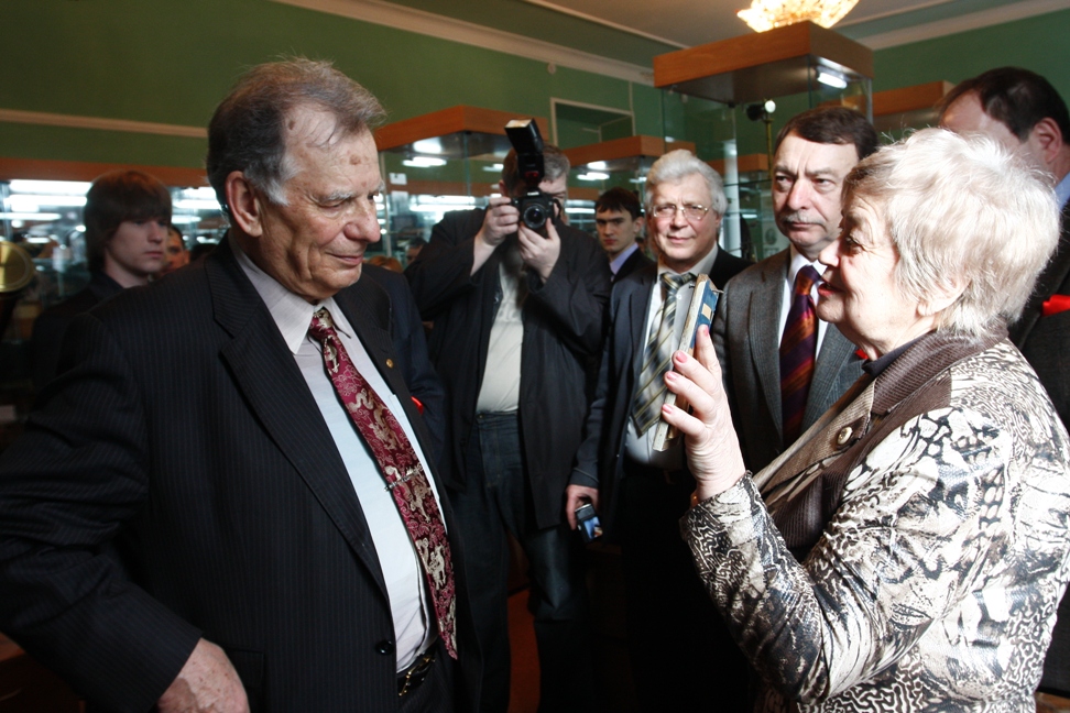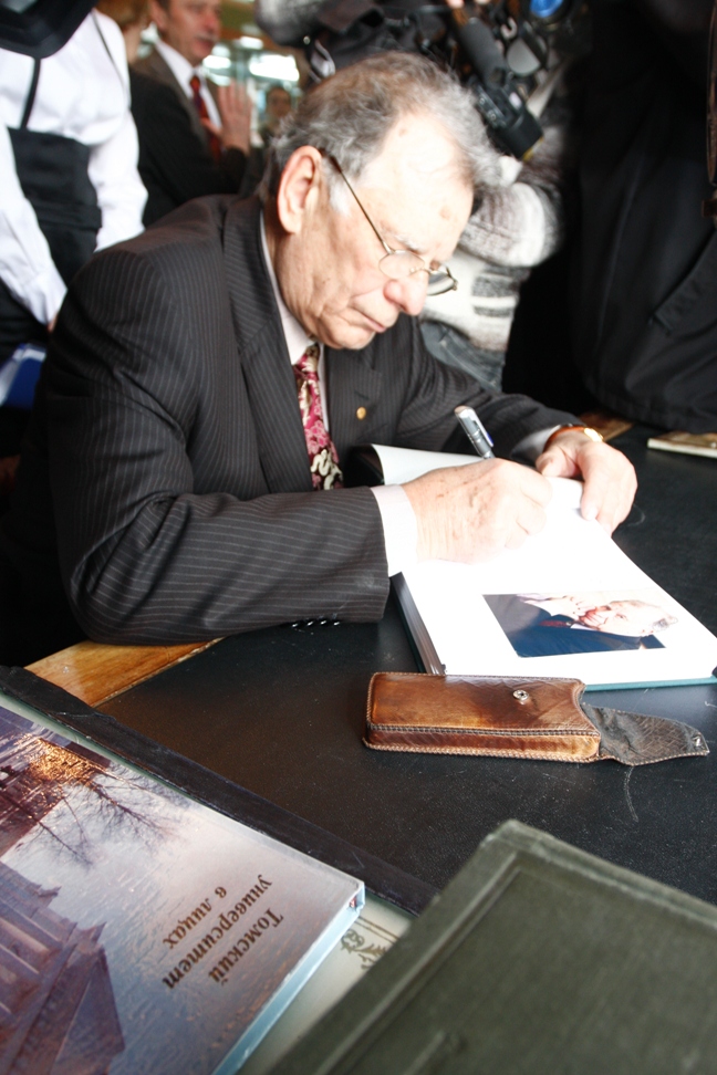 Красную ленточку перерезал нобелевский лауреат, академик Жорес Иванович Алферов. Ему ассистировали ректор ТГУ Г.В. Майер и председатель Президиума ТНЦ СО РАН С.Г.Псахье (у всех троих в карманах фрагменты ленты). После осмотра музея Жорес Иванович оставил запись в книге почетных посетителей музея.